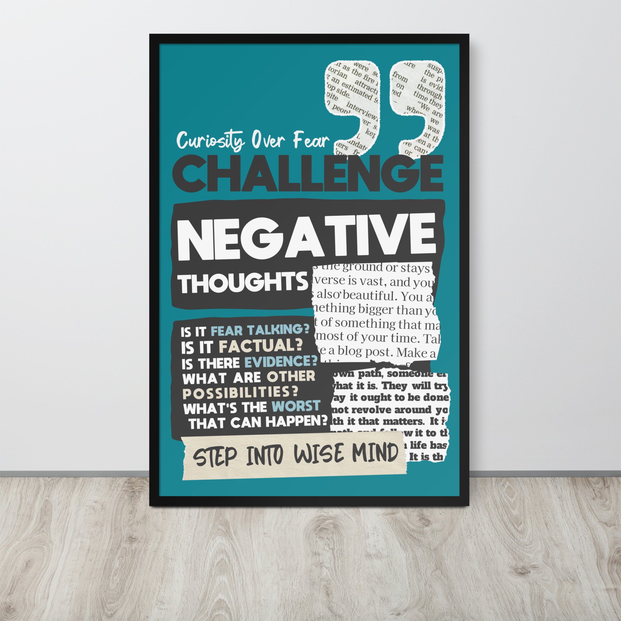 "Challenge Negative Thoughts" DBT Poster (Teal) (Framed)